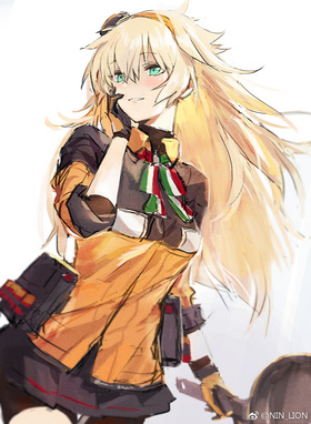 | “ | 接到S.A.T.8稿子的時候立即想到的是意大利的浪漫風 情,好想畫一個開朗又熱情的孩子阿這樣反覆思考著 然後把很多個人認為有活力和浪漫的元素都加進去了。 就是這樣。一言敝之就是很對我自己的口味,如果大家 也能喜歡上這個孩子的話就太好了。 服裝的剪裁來自於一些便利店和油站的工作服設計,意大 襪子和護盾的橙色還有八重齒都是為了暗示Fabarm公司 |