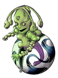 替身形态是藏在一个足球内的绿色毒气,能够自足球内构成一个儿童大小的人形上身,头顶衍生出四根向下垂的触须,额头和触须顶端的球状结构上有着三角形的印记。